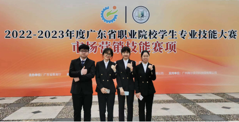 2023年4月1日-2日,由广东省教育厅主办的“2022—2023年度广东省职业技能大赛市场营销技能赛项”,在广州科技贸易职业学院举行。我校经济与管理学院黄嘉敏、宋启平老师指导并带队参赛,2021级工商企业管理专业学生陈曼桦、陈彦晓、黄宇淇、谭健龙四名同学组成参赛队伍参加本次大赛。