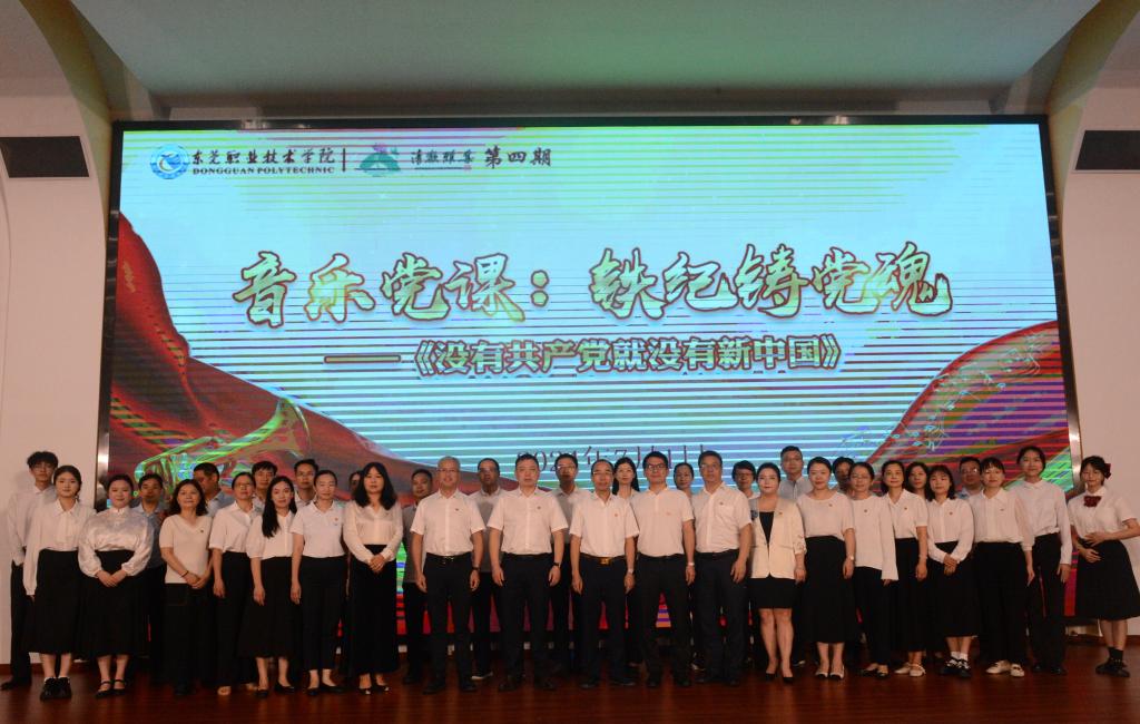 学校廉政文化宣讲团讲解员们通过介绍东莞党史上4个铁纪铸党魂的人物故事拉开音乐党课的帷幕,让在场党员重温了他们的英雄事迹,感受党的伟大发展历程和丰功伟绩。科研处等4个职能部门的党员干部分别分享了他们关于党纪的学习心得,从不同的工作角度强调党史和党纪学习教育的重要性。