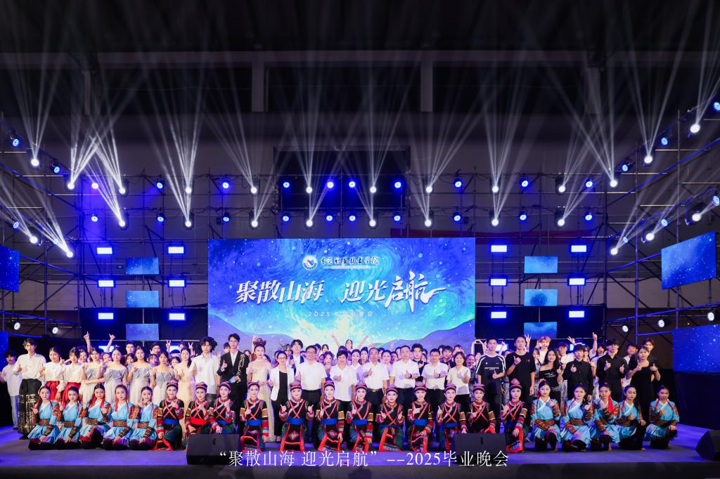 6月26日晚,我校2025届毕业晚会在体育馆举行。校党委书记司琪,党委副书记、校长贺定修,党委副书记、纪委书记蔡东宝,党委委员、副校长杨云奇出席晚会。学生处、教务处、团委、各二级学院主要负责人及师生代表齐聚一堂,共同度过了一个充满温情、感动与美好回忆的夜晚。