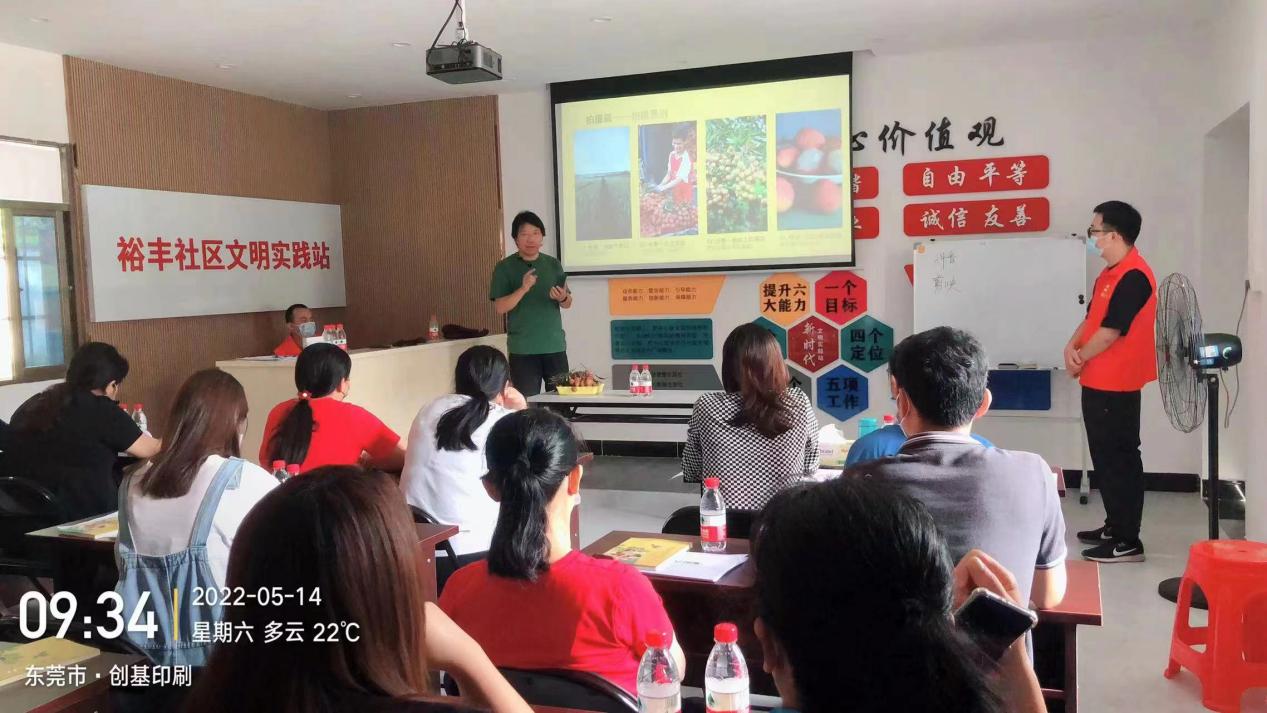 5月14日上午,在荔枝即将上市的时节,东莞市樟木头镇裕丰社区在引导荔农利用网络平台开启销售的新模式上勇于作为,积极帮扶。我校创意设计学院学院广告设计专业张红华老师根据前期与社区对接的课程需求,精心制定了本次培训课程,在两位老师的指导下,学习拍摄短视频技巧,为荔农后续进行荔枝直播销售、视频剪接、图文编辑等需求传经授道。课程中还包含国内电商市场分析、发货售后处理等基础知识,以现场实操的模式,手把手教学,以现场道具、户外果树等场景传授短视频拍摄剪辑、直播间搭建等技巧,让以往自发在网络上推销的荔农更加专业化,助力乡村振兴。
